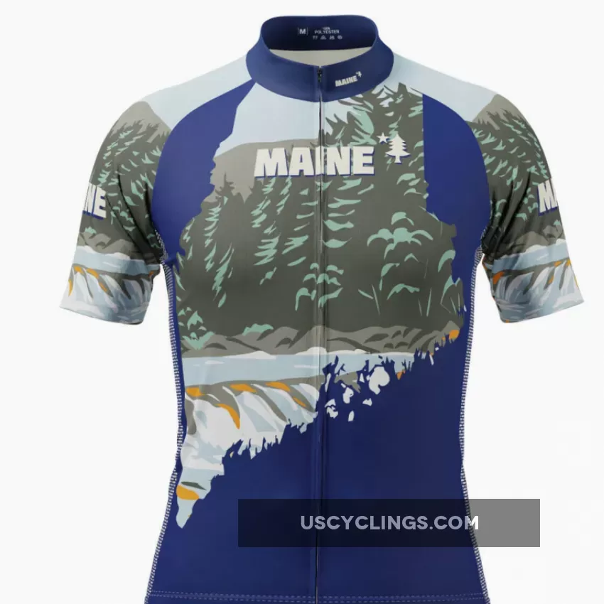 Men’s Maine State Flag Short Sleeve Cycling Jersey For Sale