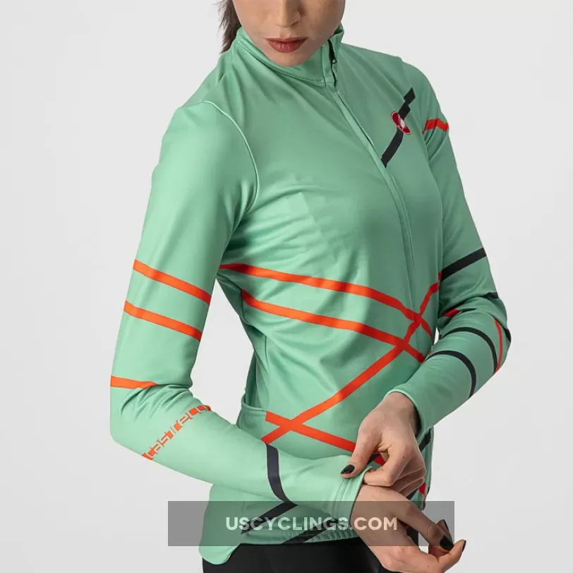 The Castelli Diagonal women's long-sleeved shirt is a printed thermal shirt for professionals, combining warmth with great moisture management. The graphics are designed to look perfect on their own or under a Perfetto or Aria vest.