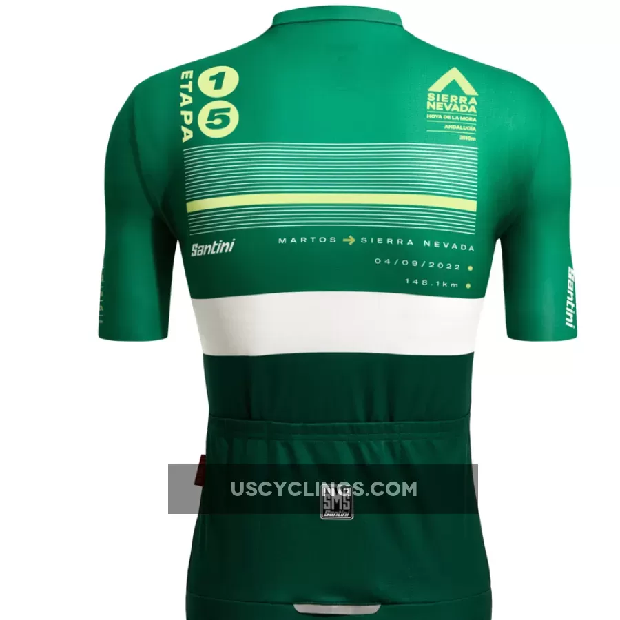 The Vuelta Espana 2022 Sierra Nevada jersey is a jersey designed for the queen of this year's Velta stages, which finishes at the top of the Andalusian ski resort Sierra Nevada, will see runners tackle the one and grueling climb of the Hoya de la Mora. The shirt pays homage to the distinctive colors of the Andalusian provincial flag, incorporating a graphic motif inspired by the statue of the 'Virgen de las Nieves' at the top of the climb.